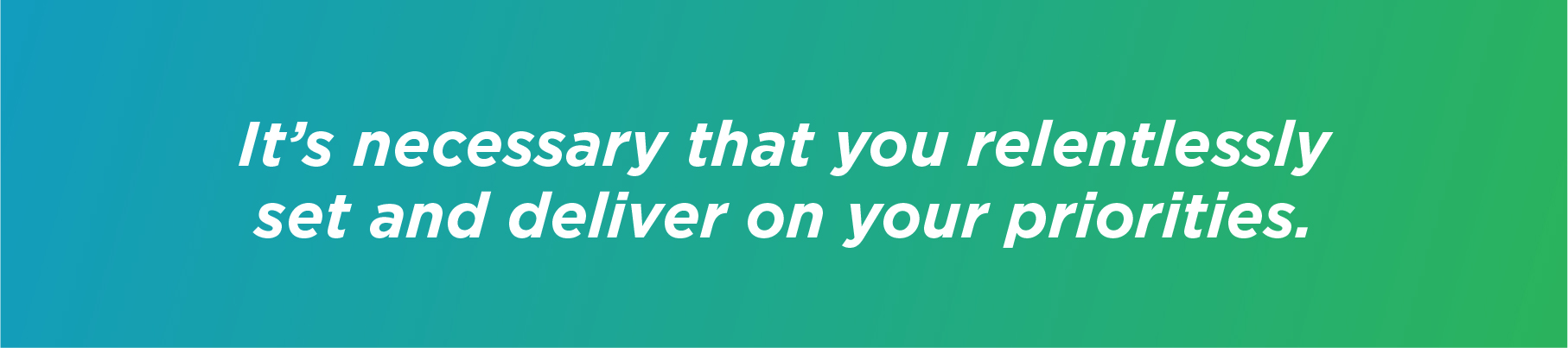 For example, if you were hired to help launch a new product to the market, then you should not dedicate resources to increasing the company-wide usage of the ERP system. It’s necessary that you relentlessly set and deliver on your priorities—make it a fundamental part of your role.