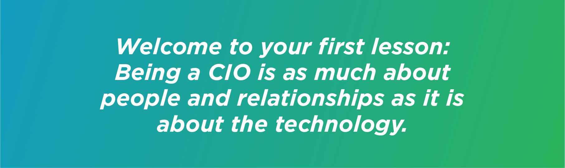 For an experienced, technically focused leader, some of these may seem obvious. Are you wondering why we’re even considering them? Welcome to you first lesson: as CIO – being a CIO is as much about people and relationships as it is about the technology.